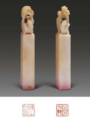 A PAIR OF SHOUSHAN STONE SEALS CARVED BY WANG ZHUANGWEI
