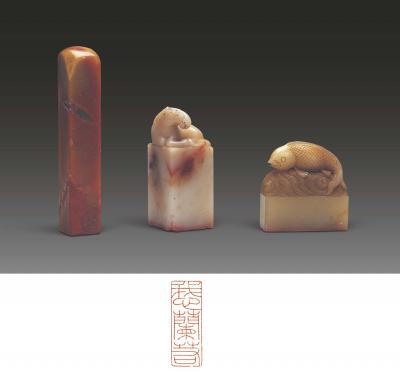 THREE SHOUSHAN STONE SEALS CARVED BY ZHANG YUECHENG AND LIU GONGBO,ETC.