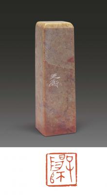 印文: 子阳师 边款: 天衡。 A QINGTIAN STONE SEAL BY HAN TIANHENG Used by Lu Yanshao 尺寸: 2.2×2.2×8cm 估价: 12,000-20,000 元