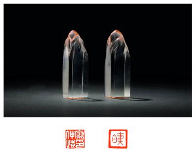 A PAIR OF LIAO ZHONGKAI’S PRIVATE CRYSTAL SEALS