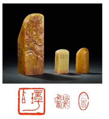 THREE QINGTIAN STONE AND SHOUSHAN STONE SEALS CARVED BY YE WEIMING