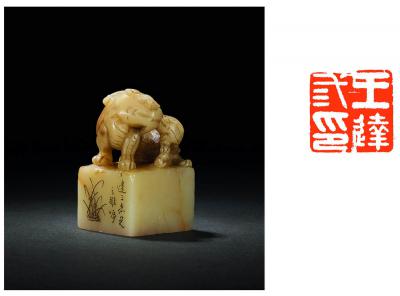 印文: 王达三印 边款: 达三老兄之雅嘱,一九四二,游罗云古景以作纪念。弟常刻。 A ROSS QUARTZ STONE SEAL WITH BEAST DESTGN 尺寸: 3.5×3.5×5.8cm 估价: 10,000-20,000 元