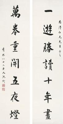 沈卫(1862~1945) 楷书 七言联