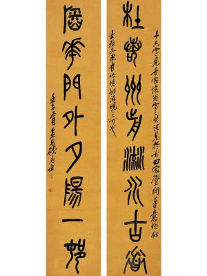 WU CHANGSHUO EIGHT-CHARACTER COUPLET IN SEAL SCRIPT