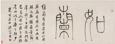 HONG LIANGJI CALLIGRAPHY WRITTEN IN SEAL SCRIPT ON HORIZONTAL INSCRIBED BOARD