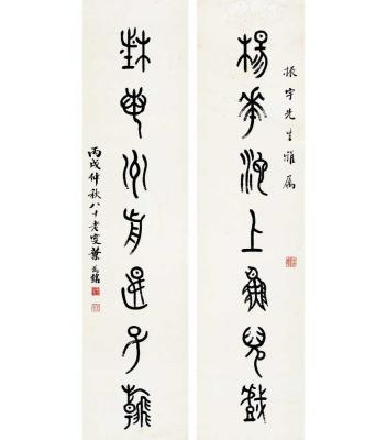 YE WEIMING SEVEN-CHARACTER COUPLET IN SEAL SCRIPT