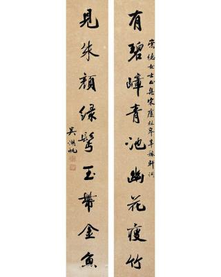 WU HUFAN NINE-CHARACTER COUPLET IN RUNNING SCRIPT