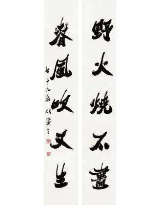 HU TIESHENG FIVE-CHARACTER COUPLET IN RUNNING SCRIPT