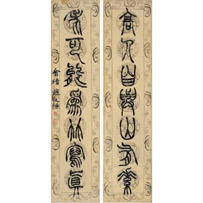 ZHAO ZHIQIAN SEVEN-CHARACTER COUPLET IN SEAL SCRIPT