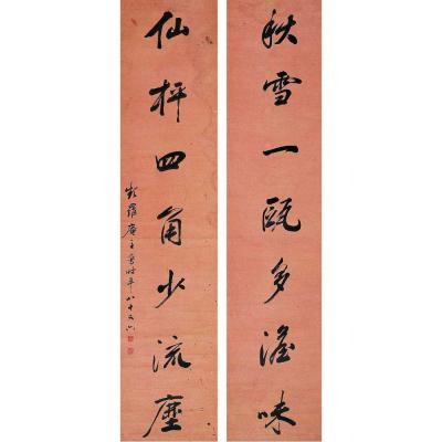 LIANG TONGSHU SEVEN-CHARACTER COUPLET IN RUNNING SCRIPT