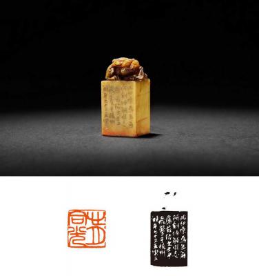 A QINGTIAN STONE SEAL WITH BEAST DESIGN CARVED BY ZHU LESAN