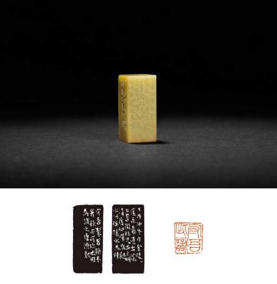 A CHEN BAOJIN’S PRIVATE QINGTIAN STONE SEAL CARVED BY WU RANGZHI (QING DYNASTY)