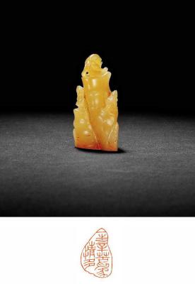 印文: 一生辛苦为情多 边款: 庚侯。 A STONE SEAL WITH DRAGON DESIGN CARVED BY FENG GENGHOU 尺寸: 2.8×1.8×5.2cm 估价: 60,000-90,000 元 作者简介: 冯康侯(1901~1983),别署老冯、阿畺、糖斋、眇叟,广东番禺人。东京美专毕业,亦善制印。