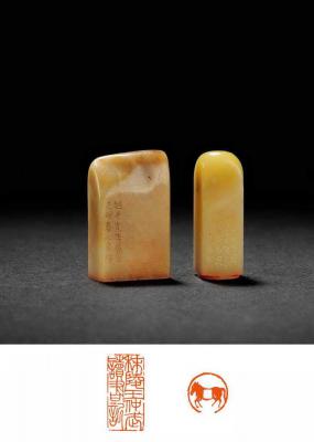 TWO SHOUSHAN STONE SEALS CARVED BY GAO SHUANG AND XIE YONG