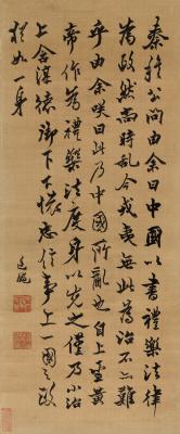 识文: 秦穆公问由余曰:中国以书、礼、乐、法、律为政,然尚时乱,今戎夷,无此为治,不亦难乎由余笑曰:此乃中国所乱也,自上圣黄帝作为礼乐法度,身以先之,仅乃小治,上含淳德御下,下怀忠信事上。一国之政犹如一身。廷肎。