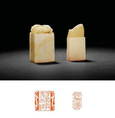 TWO ROSS QUARIZ STONE SEALS CARVED BY QIAN SHOUTIE