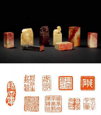 EIGHT SHOUSHAN STONE SEALS CARVED BY MASUDA KOUEN