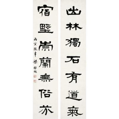 梁启超(1873~1929) 隶书 七言联