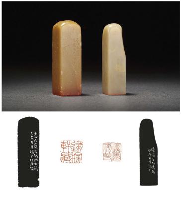 TWO SHOUSHAN STONE SEALS CARVED BY WANG TI