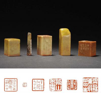 FIVE SHOUSHAN AND QINGTIAN STONE SEALS CARVED BY YE WEIMING