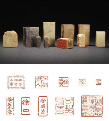 TEN SHOUSHAN AND MUXU STONE SEALS CARVED BY SUN HUA