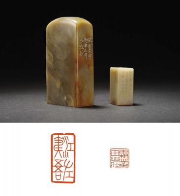 TWO QINGTIAN STONE SEALS CARVED BY HUANG SHAOMU