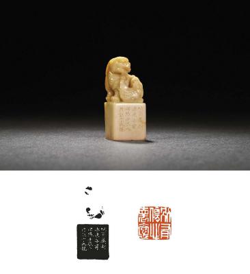 A SHOUSHAN STONE SEAL CARVED WITH LIONS BUTTON DESIGN BY FENG KANGHOU