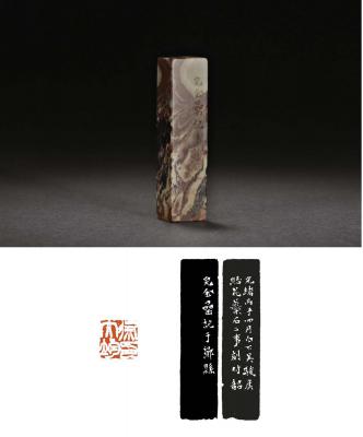 边款: 光绪丙子四月,白下吴骏侯贻花蕊石,工事刻付韶儿,金罍记于鄮县。