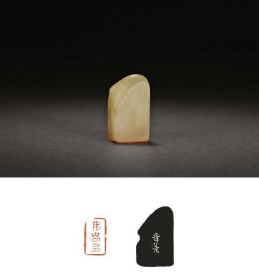印文: 弗如多 边款: 晋篆。 QING DYNASTYA SHOUSHAN STONE SEAL CARVED BY WU JIN 尺寸: 2.6×2.6×4.5cm 估价: 10,000-20,000 元 作者简介: 吴晋[清],字平子,福建莆田人。莆田派的印章,印文多作小篆,或以小篆渗合大篆。较为对称平板,章法多不够紧凑,刀法较为工整。