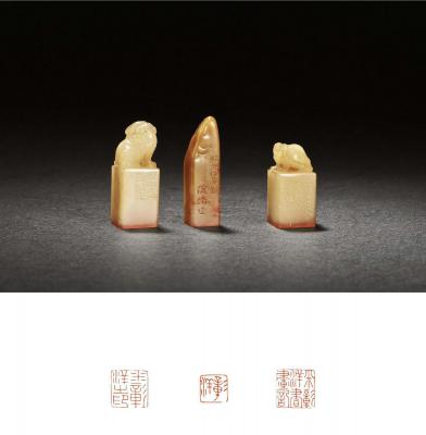 THREE SHOUSHAN STONE SEALS CARVED BY ZENG SHAOJIE