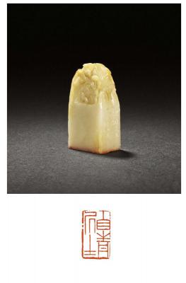 A WHITE ROSS QUARTZ STONE SEAL CARVED WITH LANDSCAPE DESIGN BY YU FEIAN