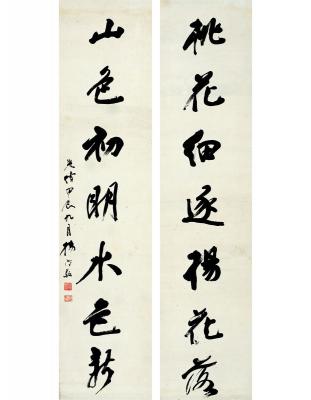 YANG SHOUJING SEVEN-CHARACTER COUPLET IN RUNNING SCRIPT