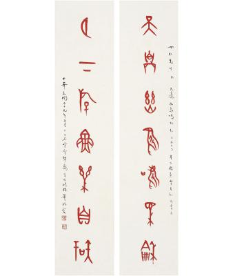DONG ZUOBIN SEVEN-CHARACTER COUPLET IN INSCRIPTION ON BONES SCRIPT