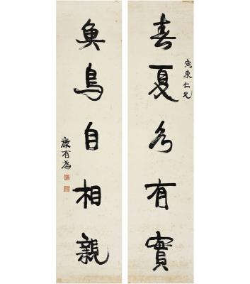 KANG YOUWEI FIVE-CHARACTER COUPLET IN RUNNING SCRIPT