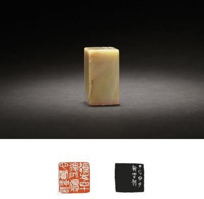 1917年作 印文: 韫岑四十后所得心赏神品 边款: 丁巳六月,新周刻。 A CHANGHUA STONE SEAL BY XU XINZHOU Dated 1917 尺寸: 2.5×2.5×4.7cm 估价: 30,000-40,000 元 作者简介: 徐新周(1853~1925),字星州,室名耦华盦、芙蓉盦,江苏吴县人。吴昌硕弟子。篆刻苍劲有力,深得乃师衣钵。着有《耦华盦印存》、《徐新周印存》。
