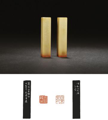 A PAIR OF QINGTIAN STONE SEALS BY FANG JIEKAN