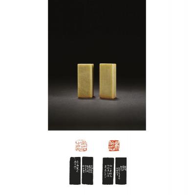 QING DYNASTY A PAIR OF QINGTIAN STONE SEALS FOR WU BOTAO BY WU CHANGSHUO