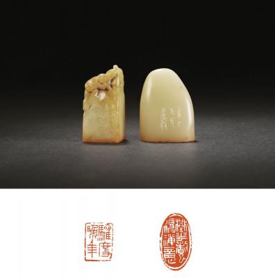 TWO SHOUSHAN STONE SEALS BY DENG SANMU