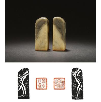 A PAIR OF LIGHTLY CARVED SHOUSHAN STONE SEALS BY WANG TI
