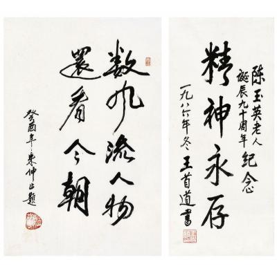 朱仲止(1904~1996)王首道(1906~1996) 行书 毛泽东词句·精神永存