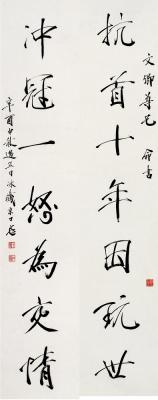 WANG DAXIN CALLIGRAPHY COUPLET WITH SEVEN CHARACTERS A LINE IN RUNNING SCRIPT