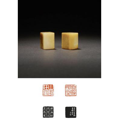 A PAIR OF SHOUSHAN STONE SEALS FOR REN JIN BY SHA MENGHAI