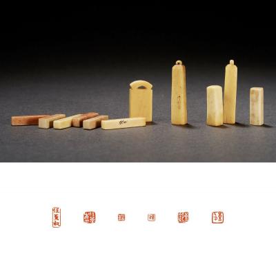 ELEVEN ELEPHANT-BONE AND ANIMAL-BONE SEALS BY JIN TIEZHI AND QIAN SHOUTIE