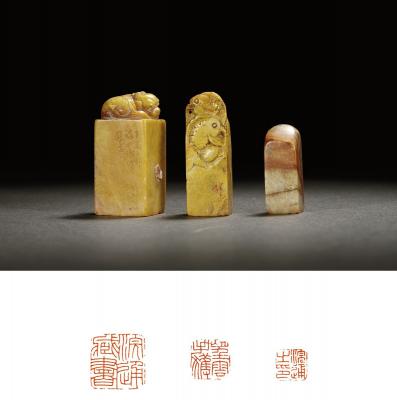 THREE SHOUSHAN STONE SEALS CARVED BY WANG TI