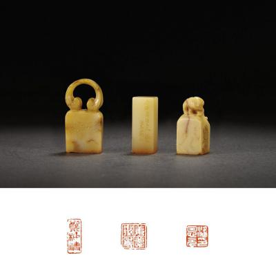 THREE SHOUSHAN STONE SEALS CARVED BY LAI CHUSHENG, TONG DANIAN AND WU ZHONGJIONG