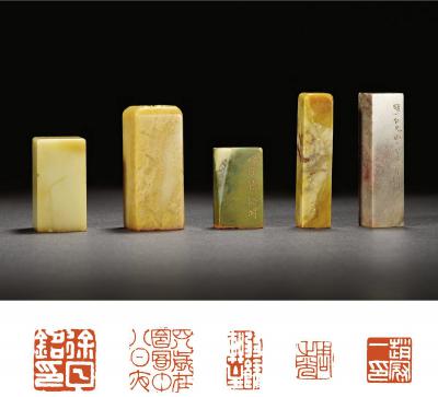 王禔、寿石工、叶潞渊、沈觉初、周梅谷作昌化鸡血石、寿山石章等五方