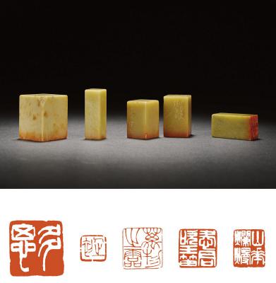FIVE QINGTIAN STONE SEALS CARVED BY XU PUSHENG