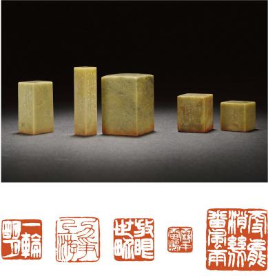 FIVE QINGTIAN STONE SEALS CARVED BY XU PUSHENG