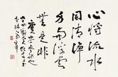 纸本 画心 识文: 心将流水同清净,身与浮云无是非。 款识: 唐人岑参诗也。九十四岁老人雄才书于珠江南岸。 钤印: 岭南(朱) 黎雄才印(白) LI XIONGCAI POEM OF CEN SHEN IN CURSIVE SCRIPT Ink on paper, unmounted 尺寸: 46×69cm 估价: 10,000-20,000 元