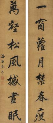 ZHA SHENG SEVEN-CHARACTER COUPLET IN RUNNING SCRIPT